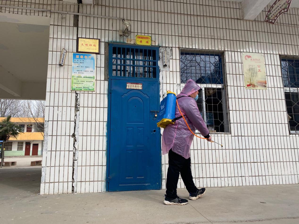 学生王雪涛和父亲(每天轮流对学校所有教室进行消毒)