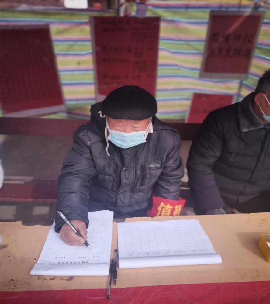 学生王雪涛的爷爷(每天坚守在王集乡新型冠状病毒肺炎防控检测点)
