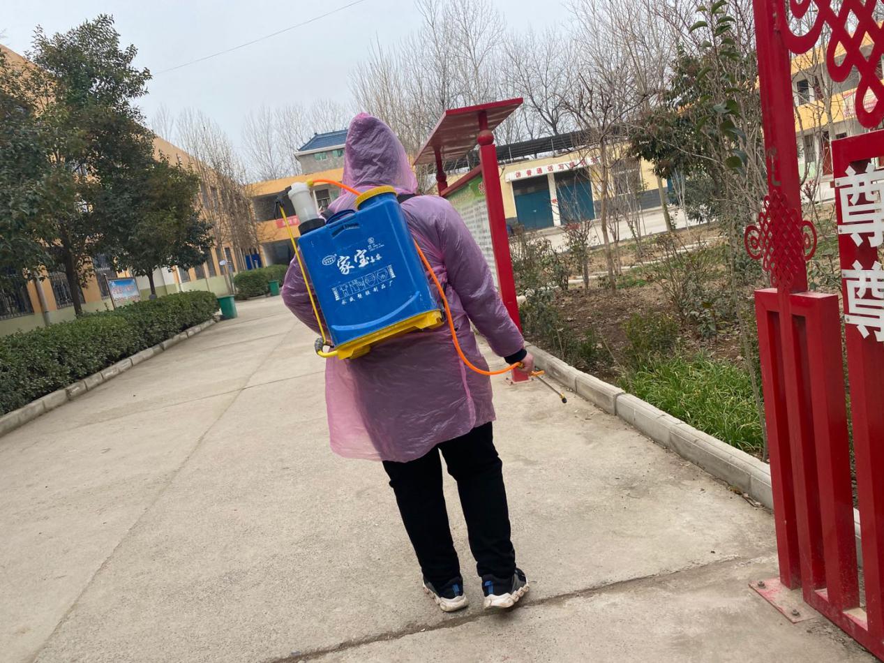 学生:王雪涛(正在为校园的每一个角落消毒)