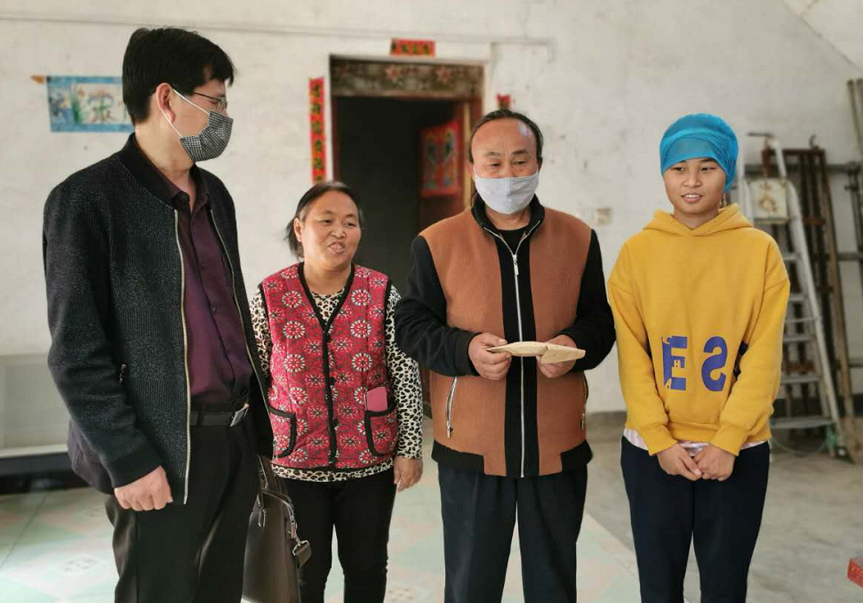 4月24日上午,pp电子平台官网入口贾涛书记、杨文贞主任和学院部分老师代表前往驻马店看望罹患脑瘤的王晓巧同学,给王晓巧同学送去了学院师生九千八百余元捐款和礼品,王晓巧同学春节期间因头晕去医院就诊,被驻马店市第一人民医院诊断出脑瘤,需立即手术,虽经两次开颅手术,晓巧同学依然乐观,坚强,前去看望的老师看到晓巧同学的精神状态和恢复情况,特别高兴,也被深深感动!贾书记转达了pp电子官网领导、老师和同学们对她的关心关爱,鼓励晓巧同学继续保持乐观心情,积极配合医生进行后续治疗,争取早日重返校园!