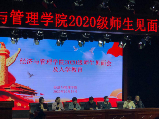 10月16日上午9点,pp电子平台官网入口2020级师生见面会暨入学教育大会在学校励德厅举行。经管学院班子成员、辅导员、教师代表出席会议,2020级全体新生参加会议,会议由副院长袁向华主持。