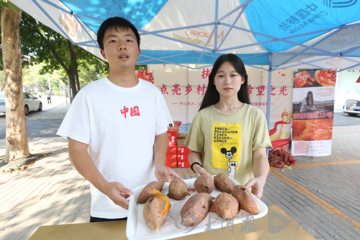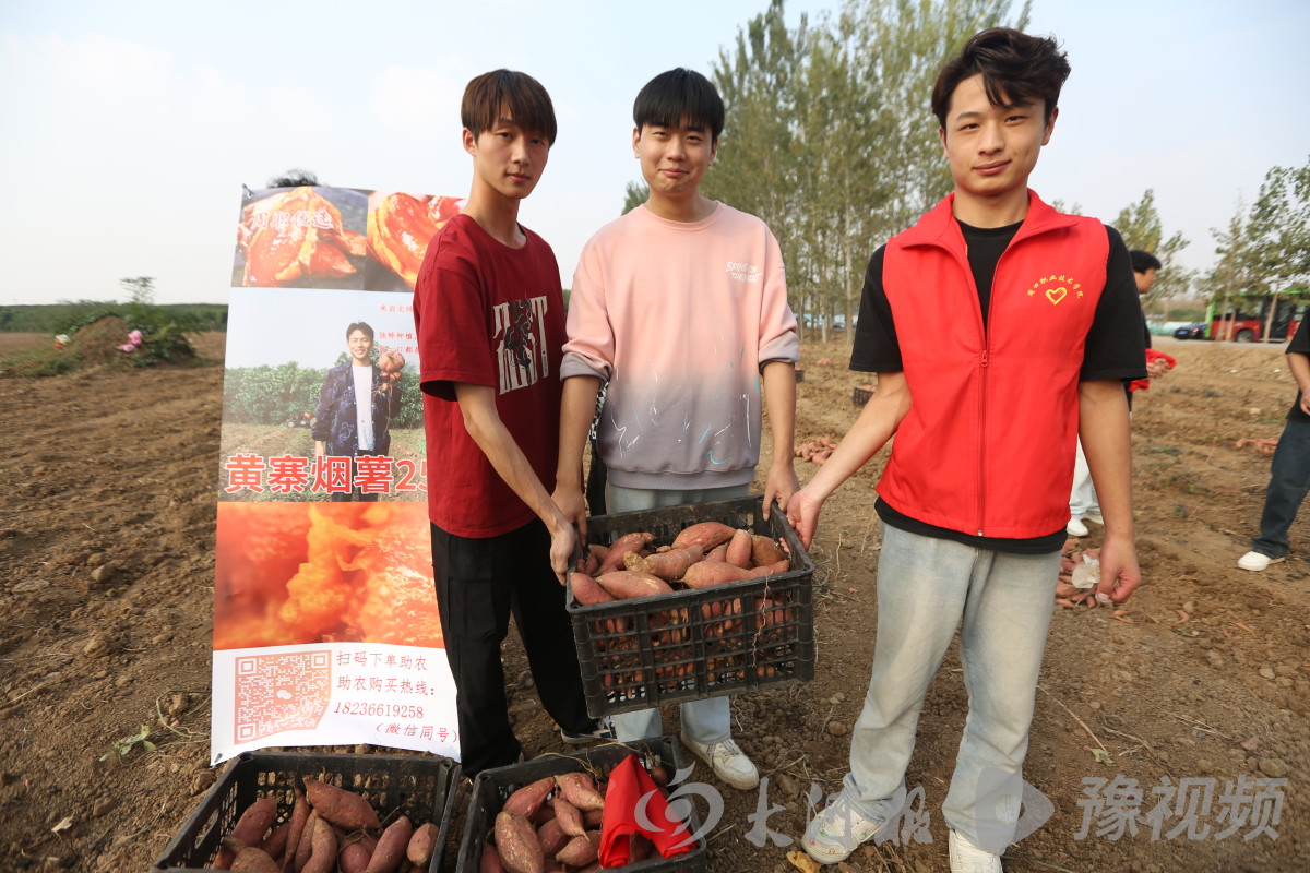 核心提示 “黄寨蜜薯,甜糯可口;现在直播,田间地头;吃上一块,精神抖擞,来来来,上链接……”10月15日下午,周口市商水县黄寨镇草楼行政村的蜜薯产业园,来自pp电子平台官网入口经济管理学院网络营销与直播专业的大学们,正群情激昂地站在镜头前,靠着自创文案开展助农带货。从下午3时到4时,短短1个小时,7名大二学生就卖出了300多斤蜜薯。