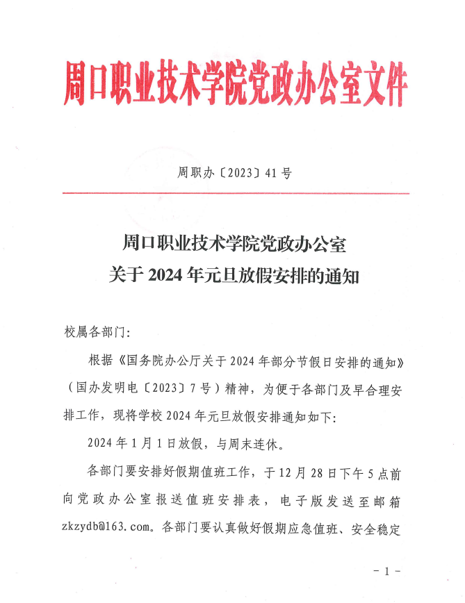 pp电子平台官网入口党政办公室关于2024年元旦放假安排的通知