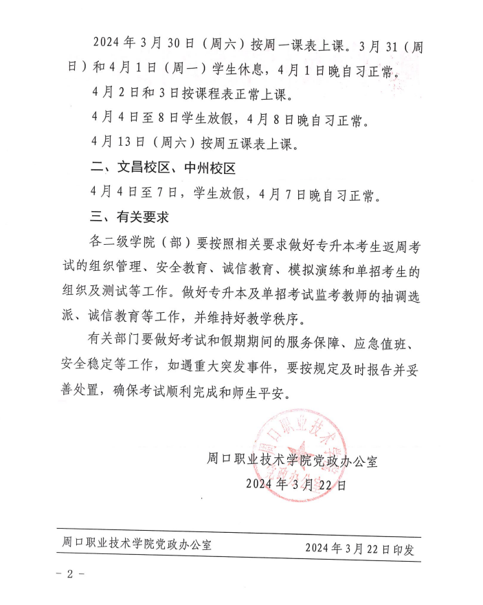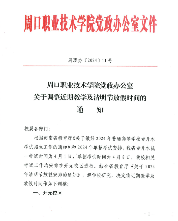 pp电子平台官网入口党政办公室关于调整近期教学及清明节放假时间的通知