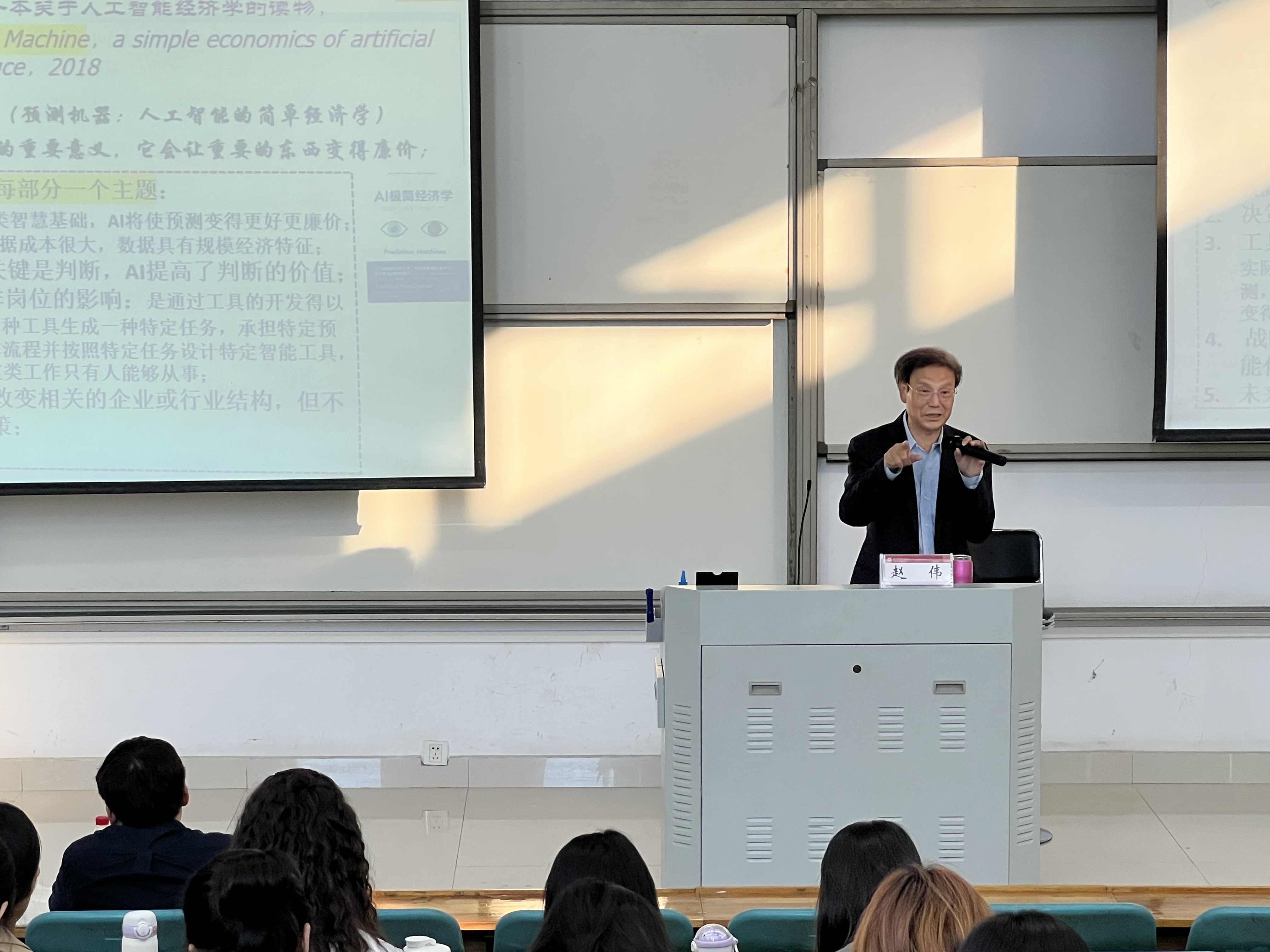 2023年10月24日下午,由开云kaiyun体育主办的浙江大学赵伟教授学术报告会在开云官网教学科研楼A209成功举办。本次报告会的题目为“人工智能经济学”,参加本次报告会的有来自全校各院系的本科生、研究生及部分教师。本次报告会由院长叶光主持。