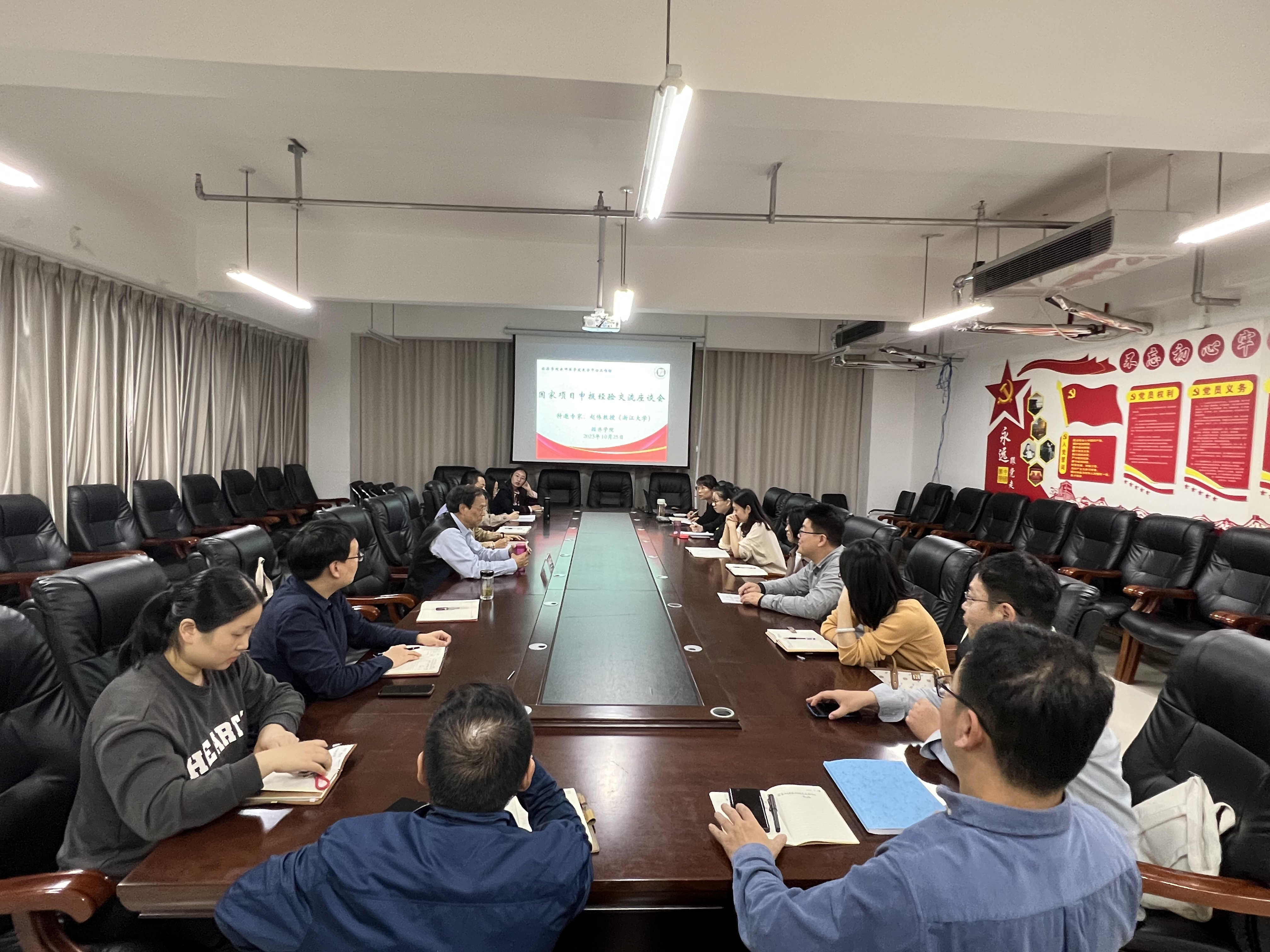 2023年10月25日下午,开云kaiyun体育教师教学发展分中心工作坊暨国家课题申报经验交流座谈会在教科楼A座604会议室成功举办。本次工作坊特邀浙江大学民营经济研究中心首席教授、博士生导师赵伟老师作为嘉宾,围绕国家项目申报技巧、青年教师学术成长及职业发展等问题进行交流座谈。副院长王春晖、区域经济学教研室主任王灏、数字经济教研室主任弓媛媛、政治经济学教研室主任侯晓东及部分青年博士教师共同参加本次交流座谈。座谈由副院长靳平主持。