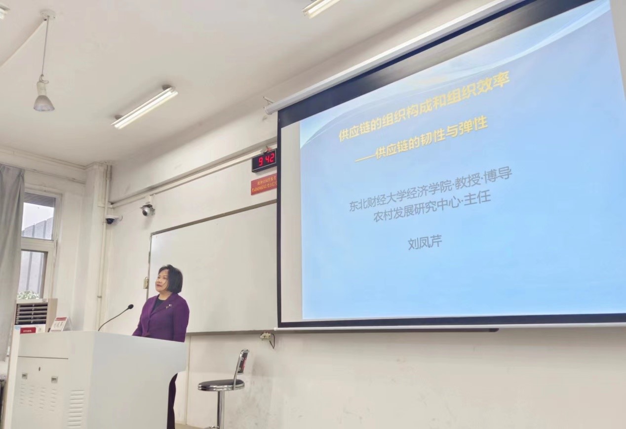 2023年12月14日上午,由开云kaiyun体育主办的东北财经大学刘凤芹教授学术报告会在开云官网第二教学楼209成功举办。本次报告会的题目为“供应链的组织构成和组织效率”,由副院长靳平、副院长王春晖、党政办公室主任张营为以及学院部分教师、研究生和本科生参加本次报告会。报告会由副院长靳平主持。
