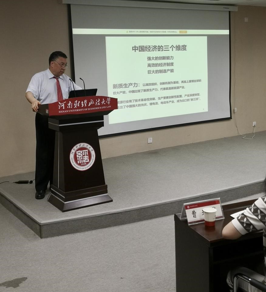 张宏霖教授以“创新与发展:中国经济的战略优势与机遇”为题,总结了中国经济的发展特征和提升路径,他特别谈到了中国经济的三大维度--强大的创新能力、高效的经济制度、巨大的制造产能。张教授的分享涉及到新质生产力、中美科技创新、中国出口动态变化、新型贸易壁垒等多个问题。此外,他结合自己在美国40多年生活和任教的经历,分享了中美关系的演变,他认为中美交流合作应更加注重文化层面的理解和碰撞,维系一种良性的竞合关系。他认为:对中国而言,发展才是最大的底气,更大力度的开放是发展的关键,学者和民众要保持对国家未来发展的坚定信心,积极唱响中国经济光明论。