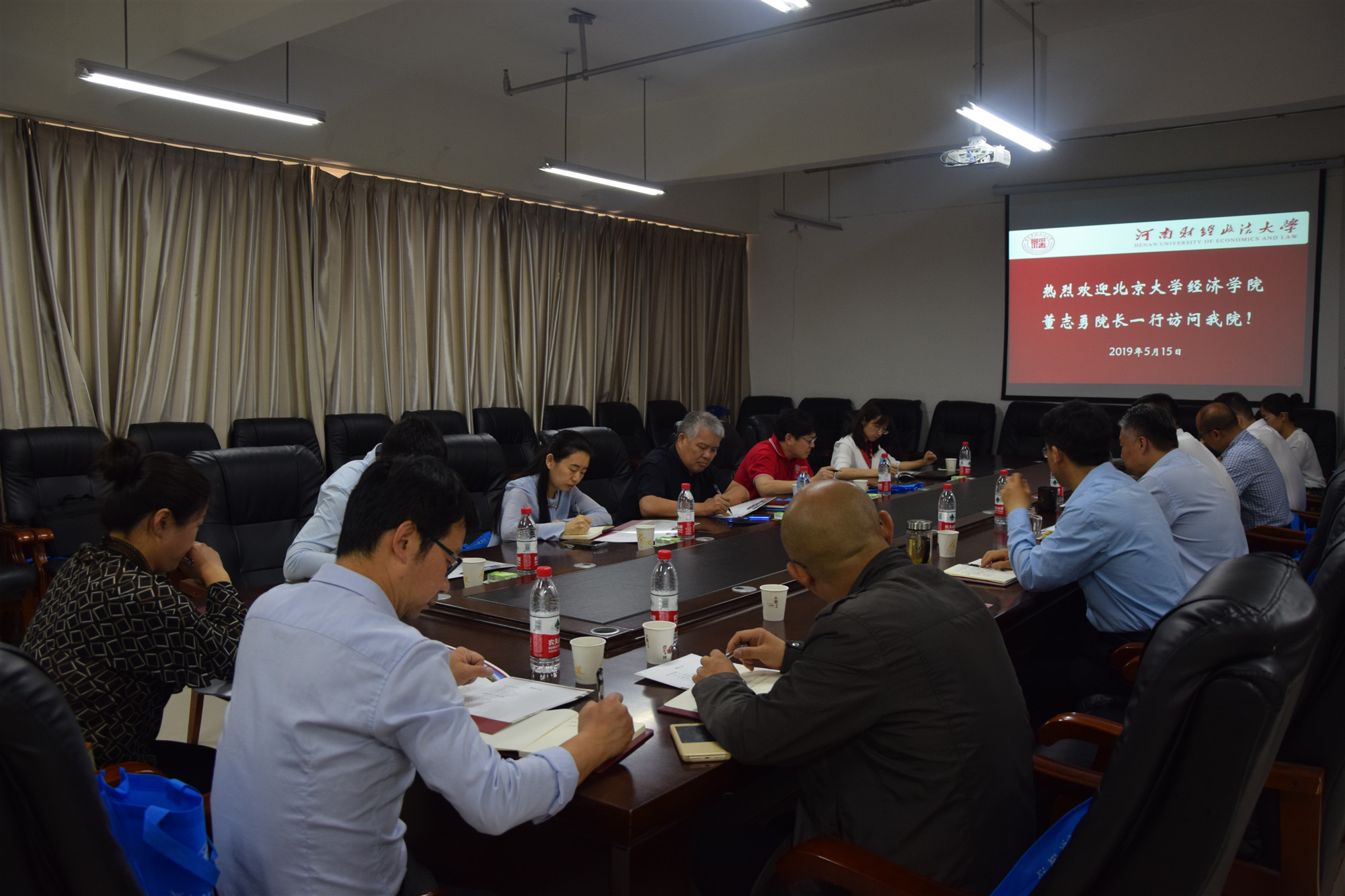 5月15日上午,北京大学开云kaiyun体育院长董志勇、党委书记崔建华、副院长锁凌燕、党委副书记王宜然、党办院办主任周超一行访问开云kaiyun体育,并于教学科研楼604室召开交流会。开云kaiyun体育校长高新才、开云kaiyun体育党委书记孙向东、院长朱红恒、党委副书记刘昆峰、副院长刘方、办公室主任刘大勇及各教研室主任与教师代表参加本次会议。