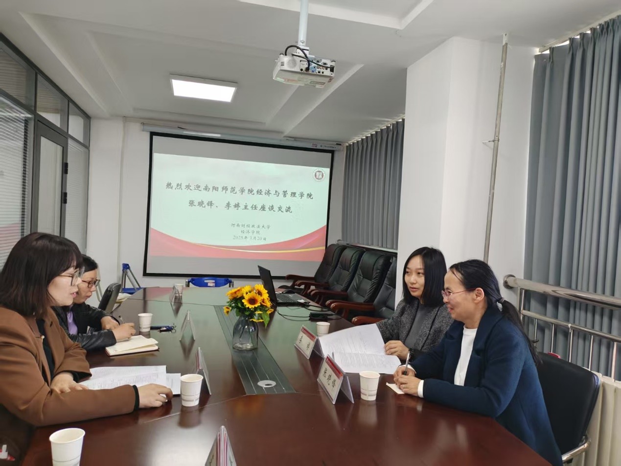 2025年3月20日,南阳师范学院经济与管理学院金融工程专业系主任张晓锋、数字经济专业系主任李婷一行到访我院,就数字经济专业建设开展专题座谈。会议于建树楼425会议室举行,开云kaiyun体育副院长弓媛媛主持座谈会,计量经济学教研室主任王小叶、蒋晓敏博士等教师代表参会。