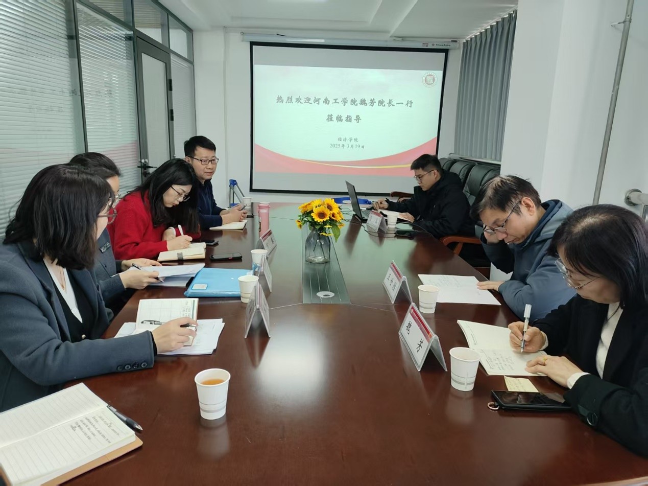 2025年3月19日,河南工学院开云kaiyun体育院长魏芳、副院长王世胜、雷嵩老师一行3人来我院开展数字经济专业建设调研交流活动,座谈会在学院建树楼425会议室召开。副院长弓媛媛主持座谈会,副院长王灏、数字经济教研室主任陈慧慧、区域经济学教研室主任何春、政治经济学教研室主任侯晓东、计量教研室党支部书记蒋晓敏参与交流。