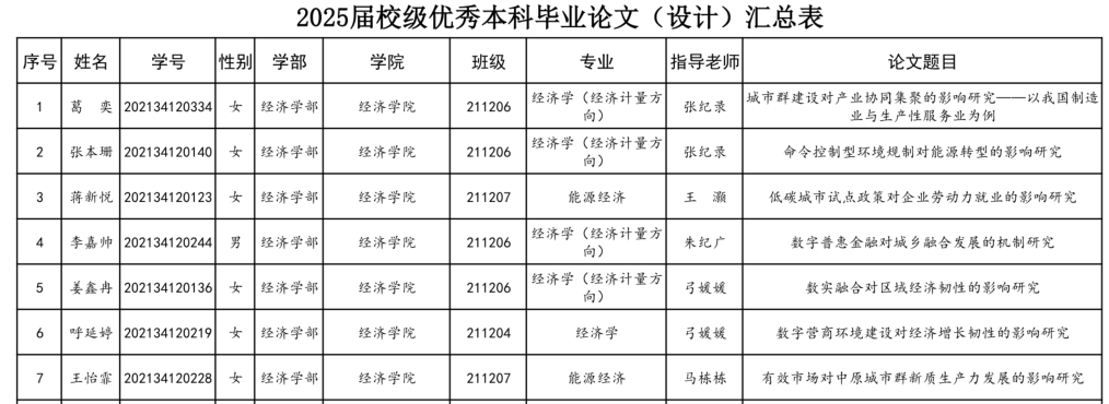 根据《开云kaiyun体育本科生优秀毕业论文(设计)评选办法》(河财政教〔2016〕58号)规定,经院系推荐、学部评审,教务部查重检测等程序,开云kaiyun体育7篇毕业论文被评选为2025届开云kaiyun体育本科生优秀毕业论文,具体信息公布如下。