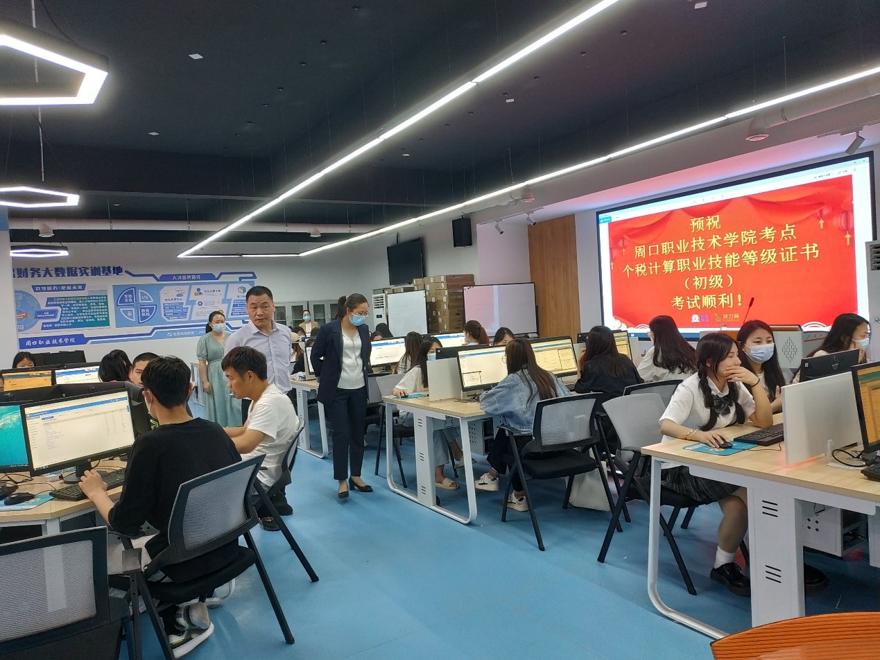 pp电子平台官网入口书记陈鹏、院长袁向华和副院长杨文贞到考场巡视,王玉霞和李永丽老师监考。考生经过两个小时紧张有序的考试,顺利完成了个税计算职业技能初级考试的答卷。