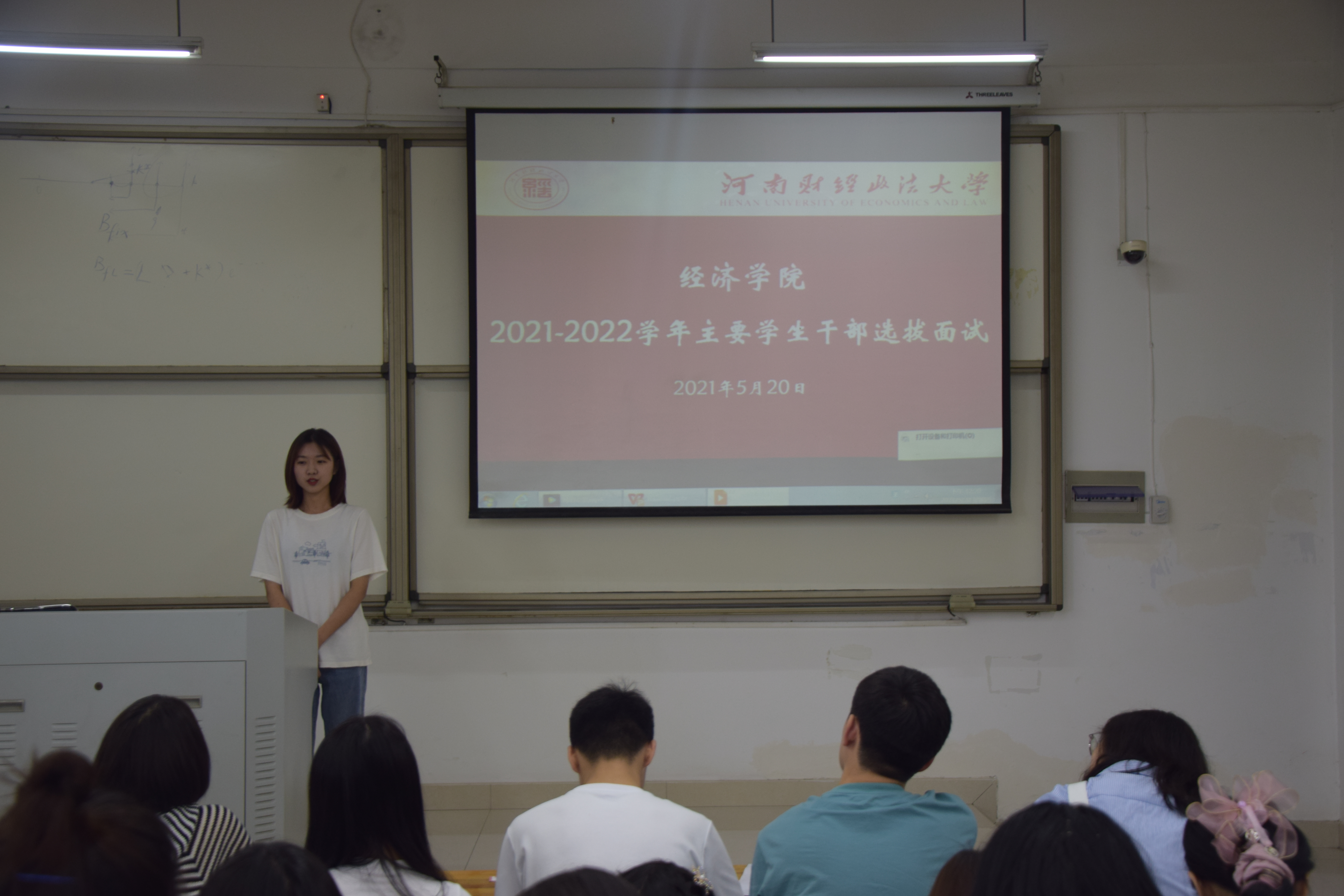 在面试过程中,秉着“公平、公正、公开”的原则,各位候选人分别上台发言,热情洋溢地进行了自我介绍以及阐述了各自竞选的优势。每个竞选者演讲完后,在座的老师及现任的学生干部对其进行提问,每一位竞选者针对问题提出自己的看法和富有建设性的意见。