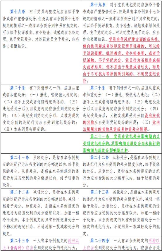 中国共产党纪律处分条例新旧对比天天学习材料二
