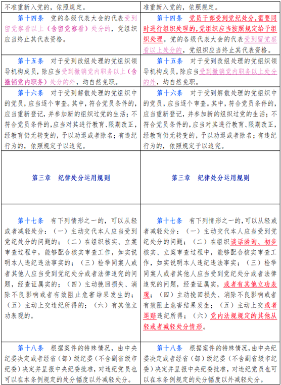 中国共产党纪律处分条例新旧对比天天学习材料三