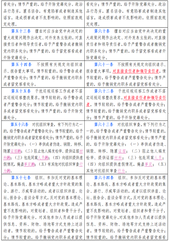 中国共产党纪律处分条例新旧对比天天学习材料七