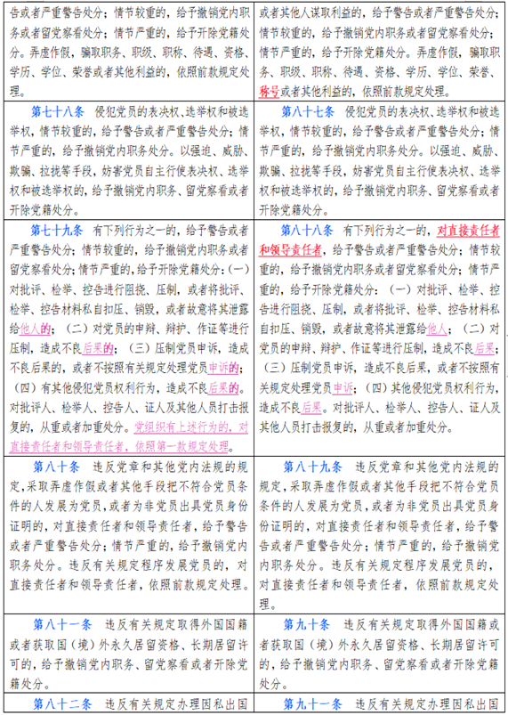 中国共产党纪律处分条例新旧对比天天学习材料十