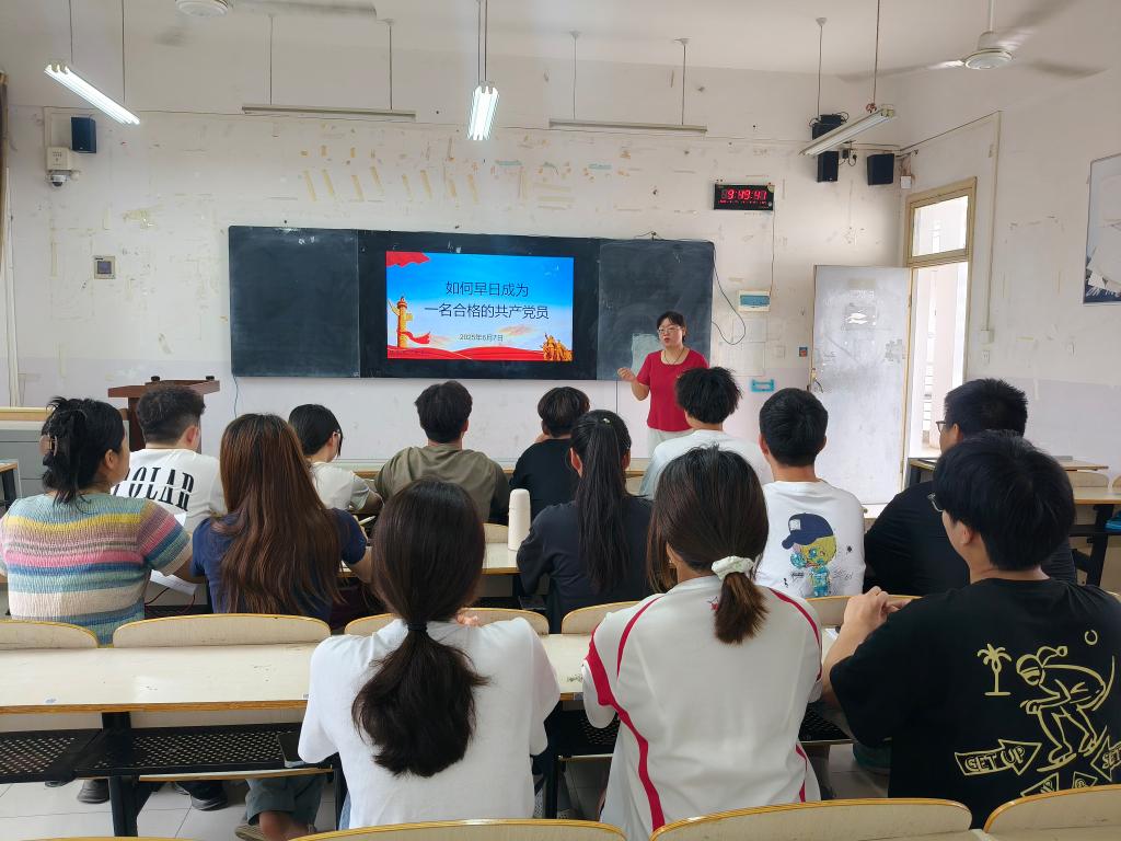 为加强学生党员队伍建设,引导学生坚定理想信念,6月7日,我院学生党支部书记郑文娟以“如何早日成为一名合格的共产党员”为题,为学生党员发展对象上了一堂深刻而生动的党课。