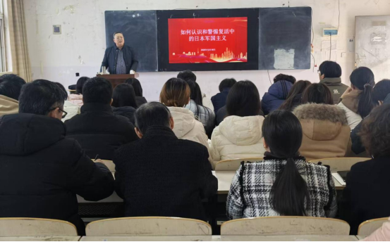 12月16日下午,校党委副书记李明臣以“如何认识和警惕复活中的日本军国主义”为题,为pp电子平台官网入口师生党员及入党积极分子代表讲授专题党课,党课由pp电子平台官网入口院长袁向华主持。