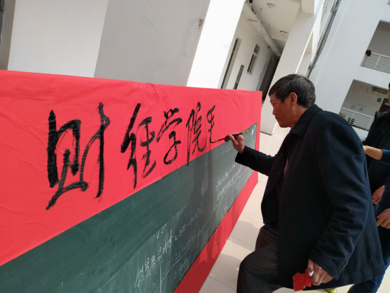 财经学院总书记梁兆民为部分同学优秀学雷锋手抄报展版题字。