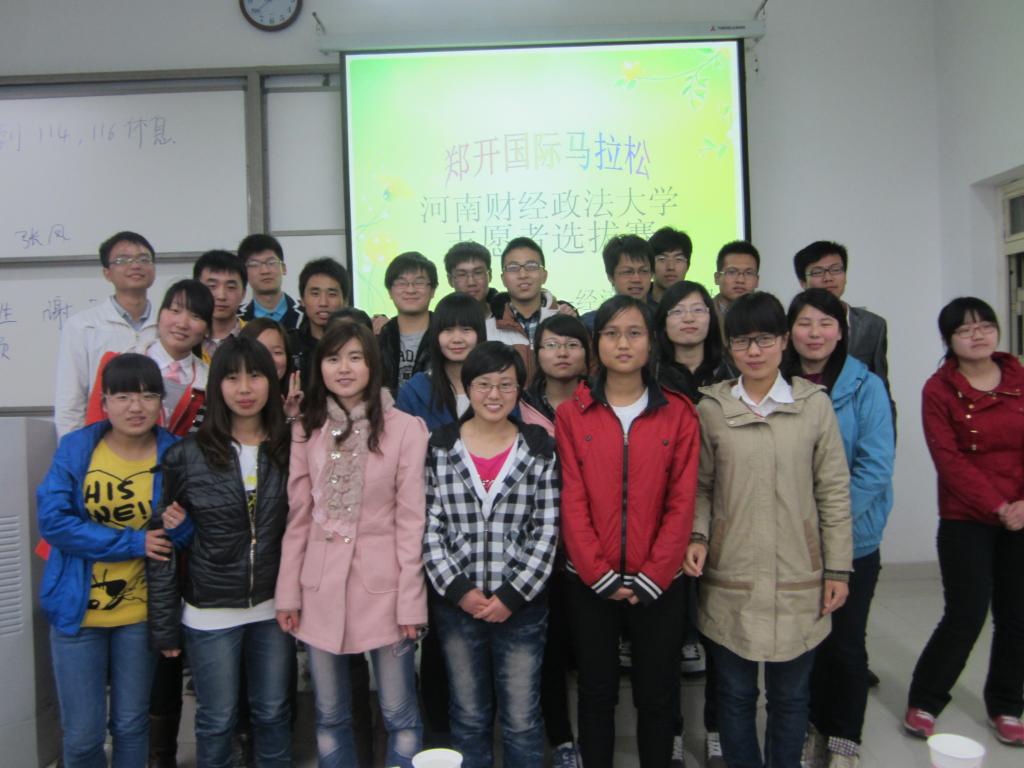 此次入选的同学都是充满热情,充满阳光,充满朝气的志愿者,他们将充分展现出财大学子的优良素质和靓丽风采,为这次郑开国际马拉松注入源源不断的“正能量”!