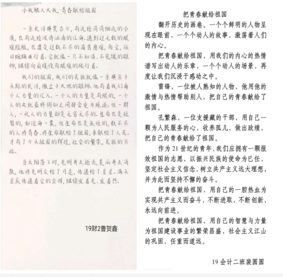 pp电子平台官网入口组织学生学习习近平总书记的“贺信精神”,并在学生心中引起热烈反响,学生们纷纷表示一定牢记习近平总书记的嘱托,坚定理想信念,提高自身素养,练就过硬本领,艰苦奋斗,砥砺前行,并到祖国和人民最需要的地方建功立业,把自己的青春献给祖国。