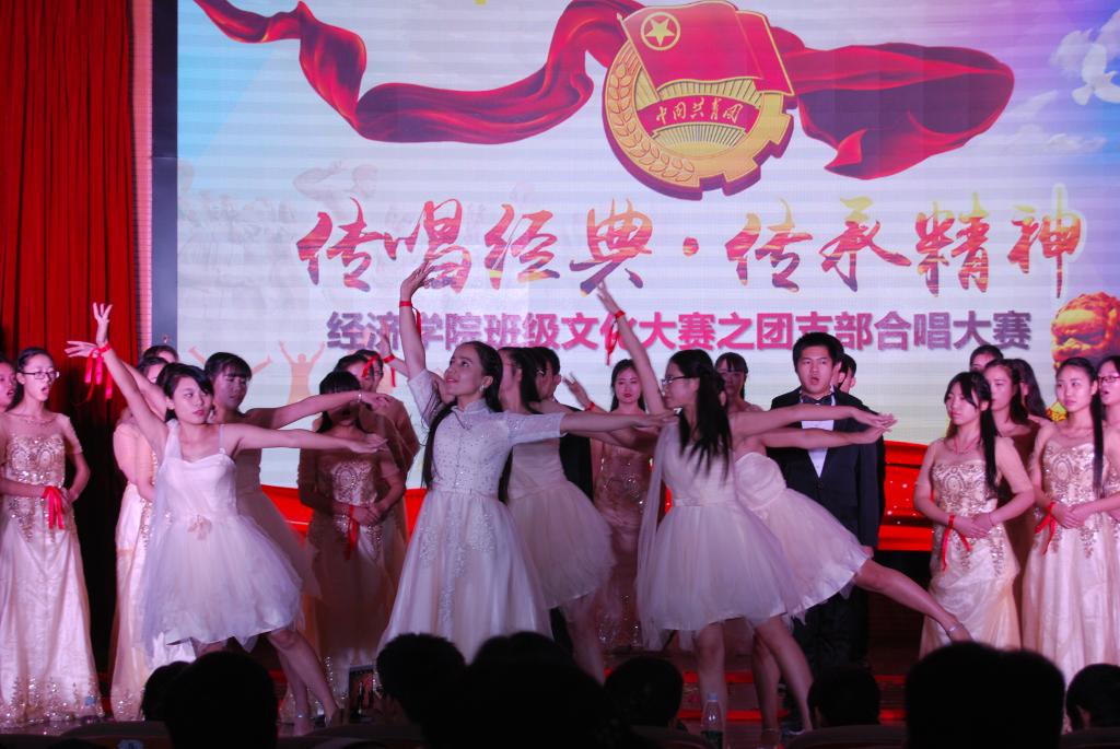 本次大赛中,各团支部需演唱共青团团歌和班歌两首曲目。在团歌合唱中,各团支部依次登台亮相,他们昂首挺胸、歌声高亢嘹亮,彰显出青年学生朝气蓬勃、昂扬向上的精神面貌。班歌演唱环节,161203团支部带来的歌曲《仰望星空》,以优美深情的歌声让现场观众沉醉其中,结合手语表演令人耳目一新。紧接着,由151208团支部带来的改编歌曲《金水东路的日子》讲述来到大学度过的时光,清新独特的队形排列,表现出对财大浓浓的情意。151207团支部带来的歌曲《放飞梦想》结合朗诵、舞蹈等形式,凭借气势磅礴的合唱博得了现场阵阵热烈的掌声。《我爱你,中国》、《旗开得胜》、《第一时间》、《红星》等各团支部独具匠心的编排和激情四射的表演,联袂为观众带来了一场精彩的视听盛宴,在回忆和感动中分享着师生对革命先驱的崇高敬意和对祖国的深深眷恋。整场比赛气氛热烈,掌声雷动。最后,比赛由艺术团声乐队带来的歌曲《那些年》再次将比赛气氛推向高潮。经过激烈的角逐,161201摘得桂冠,151208及151205荣获比赛二等奖。