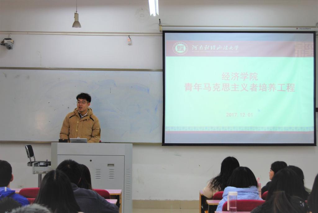 12月1日下午1点,开云kaiyun体育第八期青年马克思主义者培养工程第二讲在郑东校区第一教学楼208教室成功举行。本次课程邀请陈斌主讲,培训班全体成员参与此次课程。