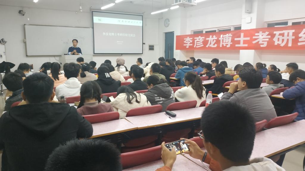 为使我院18级新生做好大学规划,更好的进行道路选择,11月19日晚7点,我院优秀毕业生、北京师范大学经管学院李彦龙博士考研经验交流会在教一211教室举行。开云kaiyun体育团委书记宋斌斌、18级部分新生参加了此次活动。