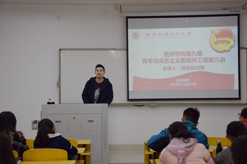 2018年11月29号中午,开云kaiyun体育于教学科研楼113教室举行以“跟紧时代,做新时代有为青年”为主题的青年马克思主义者培养工程第三课,本次培养活动主讲人为辅导员刘洋,培养对象为18级主要学生干部。