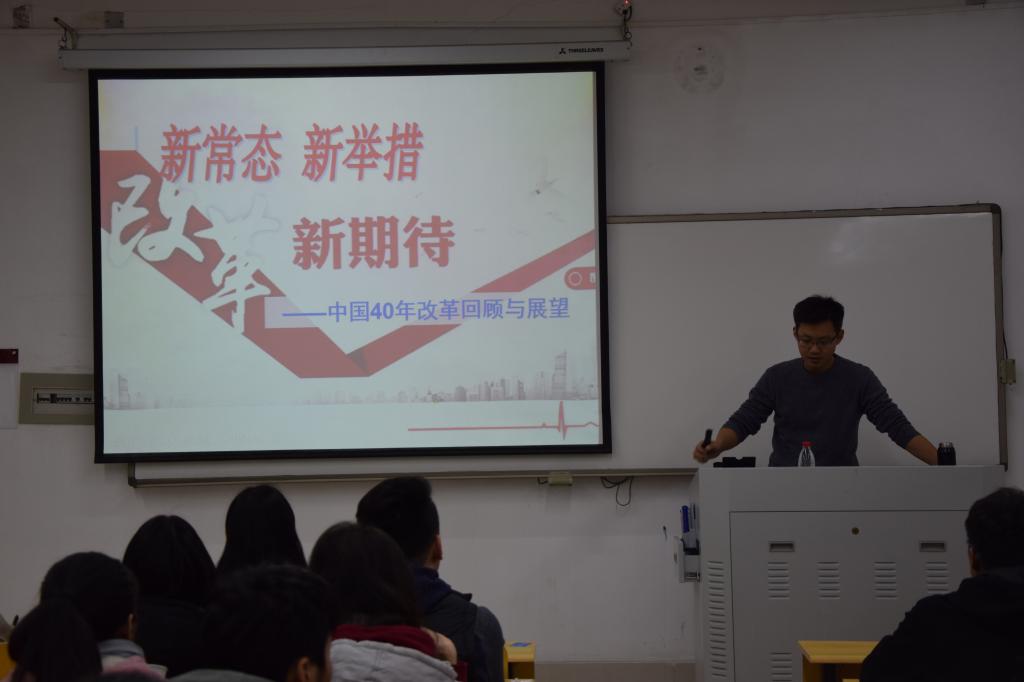12月4日中午,开云kaiyun体育青年马克思主义培养工程第四课在教科105成功举行。开云kaiyun体育团委书记宋斌斌为大家讲授了“新常态、新举措、新期待——中国40年改革回顾与展望”。