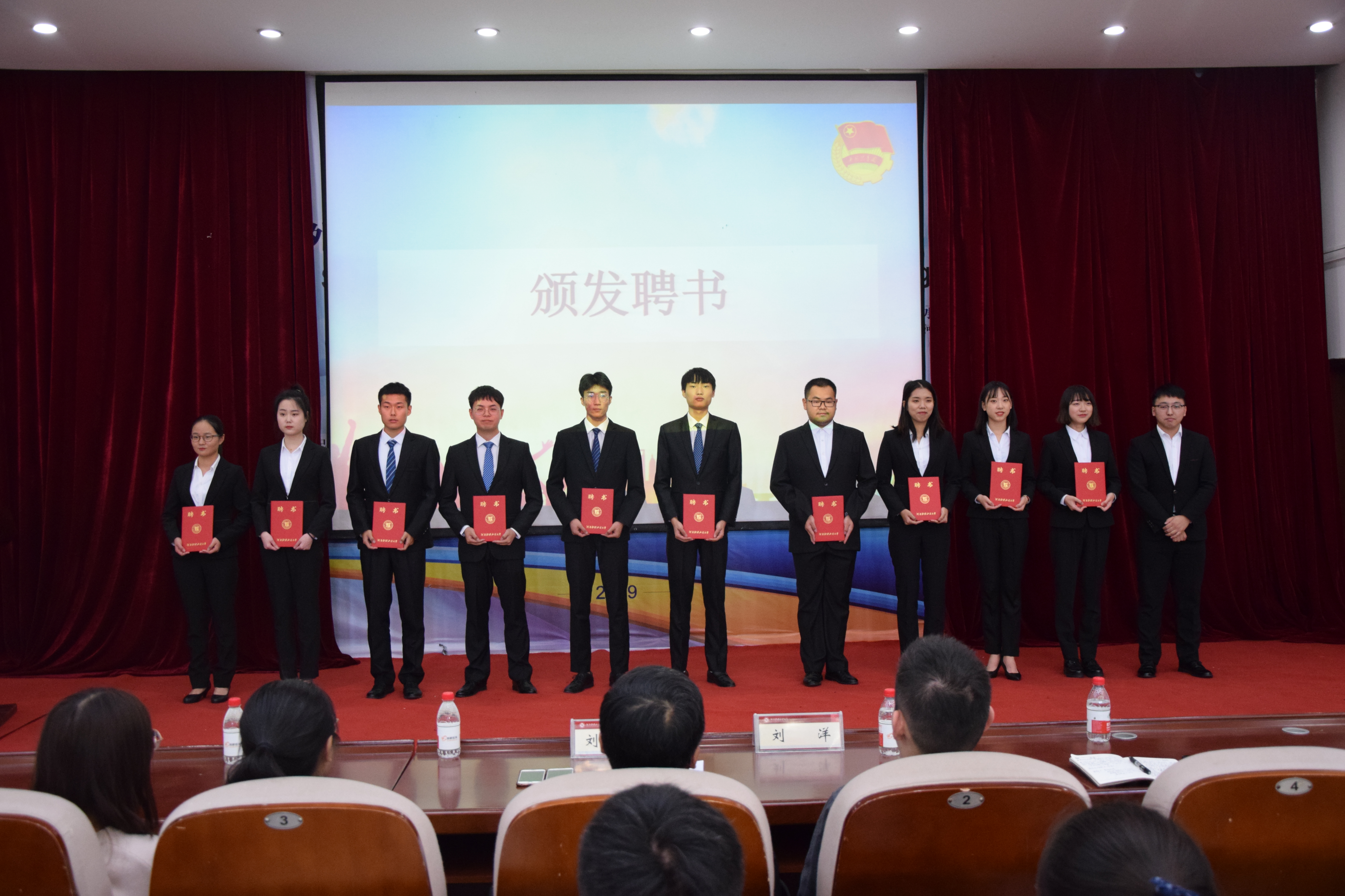 会议开始,刘昆峰副书记发表重要讲话,他肯定了过去一年中各部门取得的成绩,提出了他对体育、考研、科技创新等方面的期望以及在品德、学业、能力三大方面的要求。随后刘洋老师宣读19届干部任命名单并颁发聘书。受聘仪式末,丁继巍浅谈作为学生干部的感受与收获、张洋铭分享了今后工作的各项规划。最后,刘洋老师为2018—2019学年红旗团支部、优秀团支部、先进班集体颁奖。