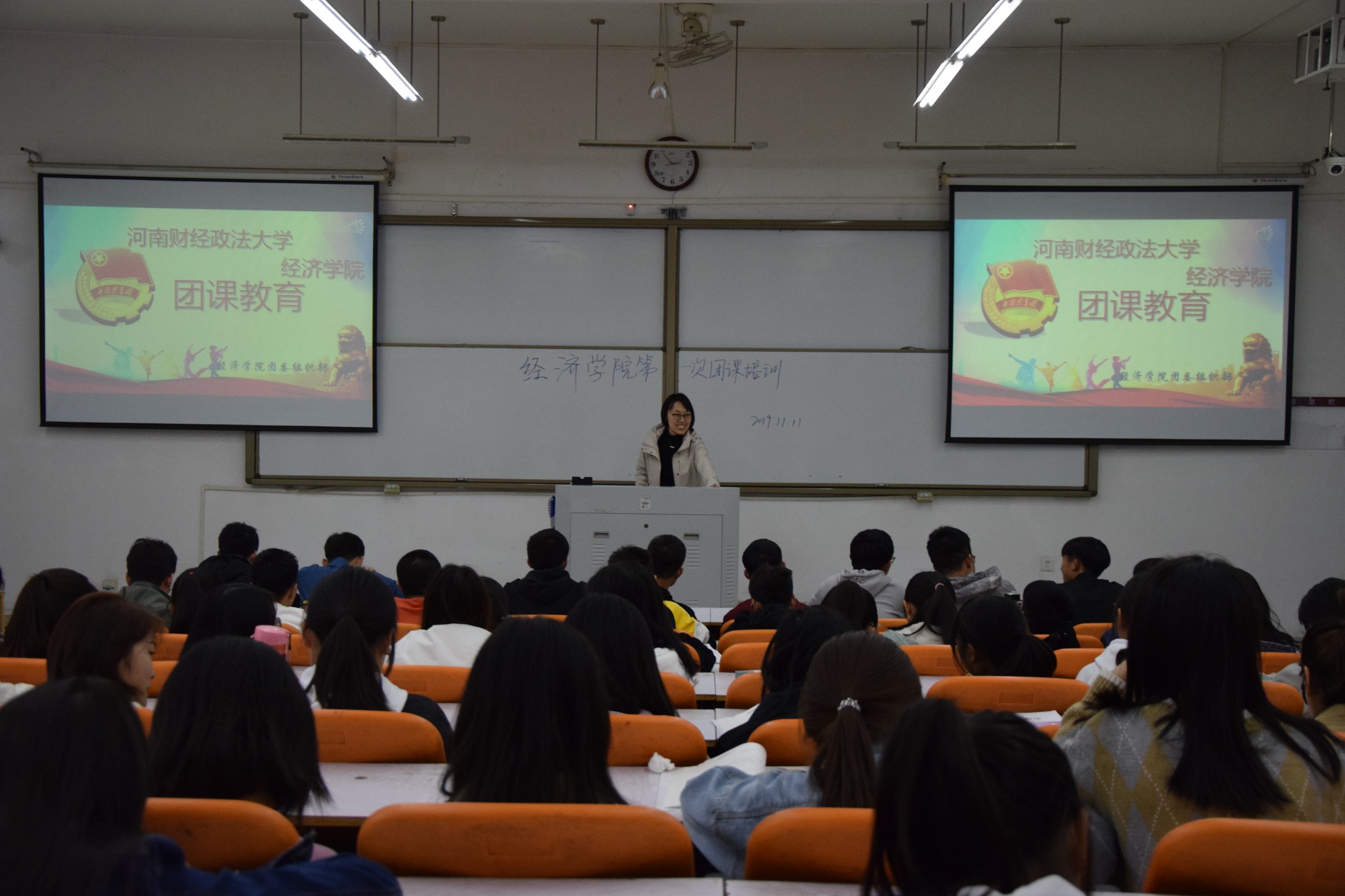 为了深入学习习近平总书记的系列讲话精神,增强团员青年的社会责任感和历史使命感,开云kaiyun体育于11月11日下午两点五十分在第一教学楼216开展第一次团课培训。本次团课培训由团委书记魏梦媛担任主讲,我院19级各团支部所有共青团员参加学习。