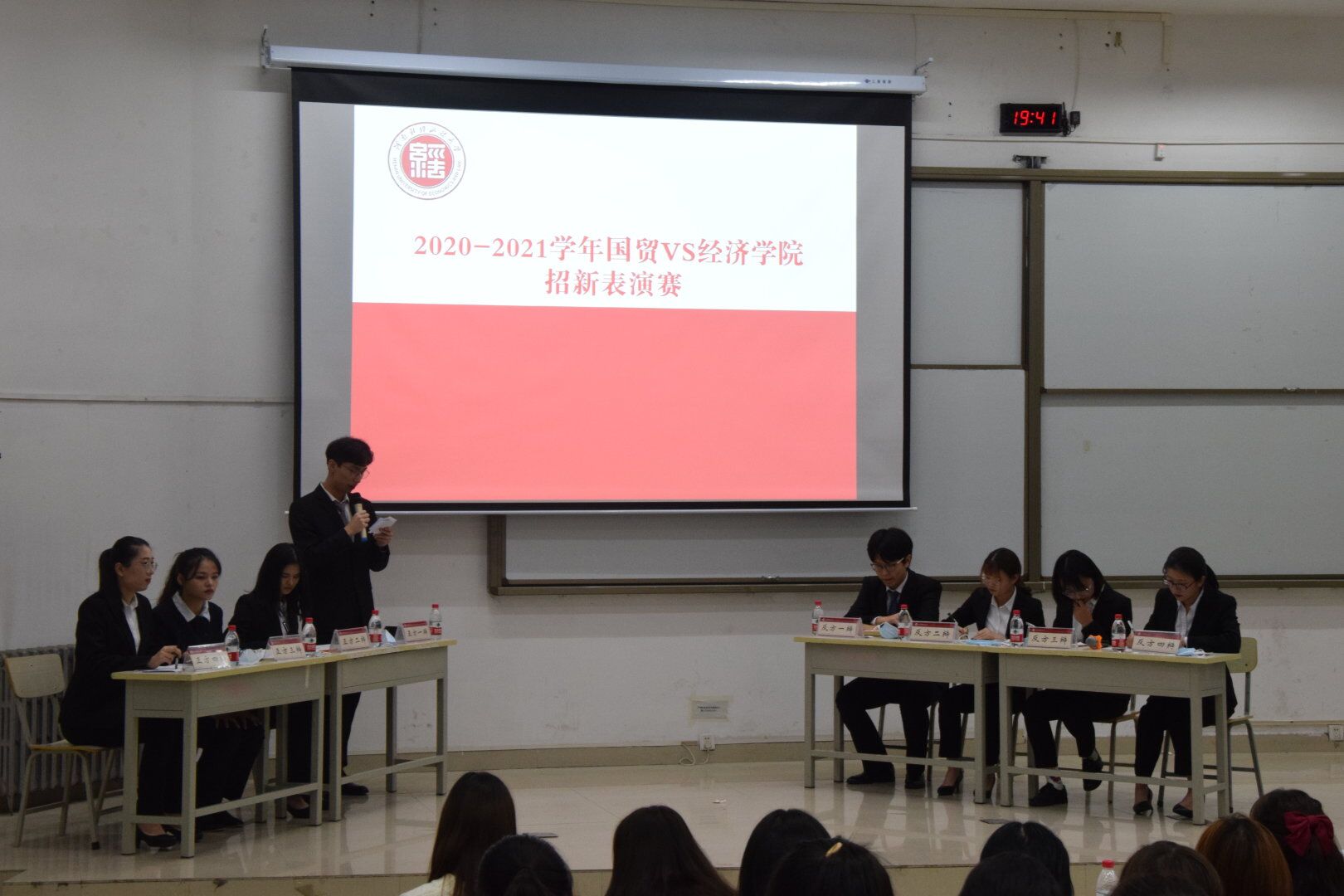 古有卧龙诸葛舌战群儒,今有群英荟萃慷慨陈词。为给经济辩论队注入新鲜血液,10月21日19时30分,由开云kaiyun体育和国际经济与贸易学院联合主办的招新表演赛于第二教学楼219举行。