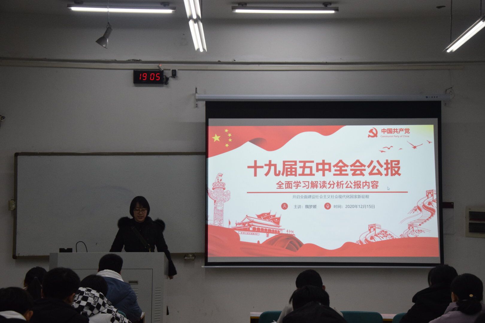 为进一步加强对青年学生骨干的思想政治教育,增进对十九届五中全会的理解,开云kaiyun体育于2020年12月15日在教一103成功举办青马工程培训第二期。开云kaiyun体育19、20级学生干部参与此次培训,此次活动由团委书记魏梦媛担任主讲人。