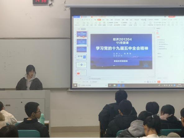 191208团支部,201202团支部,201204团支部通过PPT展示相关的理论,深刻阐述了党的“十三五”时期全面深化改革取得重大突破,全面依法治国取得重大进展,全面从严治党取得重大成果我国的经济科技和综合实力上升到新的台阶。191204团支部由团支书组织学习与了解了中央印发的相关文件,让大家深入了解十九届五中全会精神具体内容和指示,带领大家更好的学习新精神,并将精神运用于日常生活中。然后介绍发展历史,让大家更深更透彻的了解相关精神,以及随着物质生活与追求的不断发展,人们精神发生的变化。191203团支部通过用图片让团员青年们看到了祖国70多年来的发展变化,取得的辉煌成就,认识到这些成就就是中国共产党领导十四亿中国人在一个个“五年规划”中通过奋斗一点点实现的。