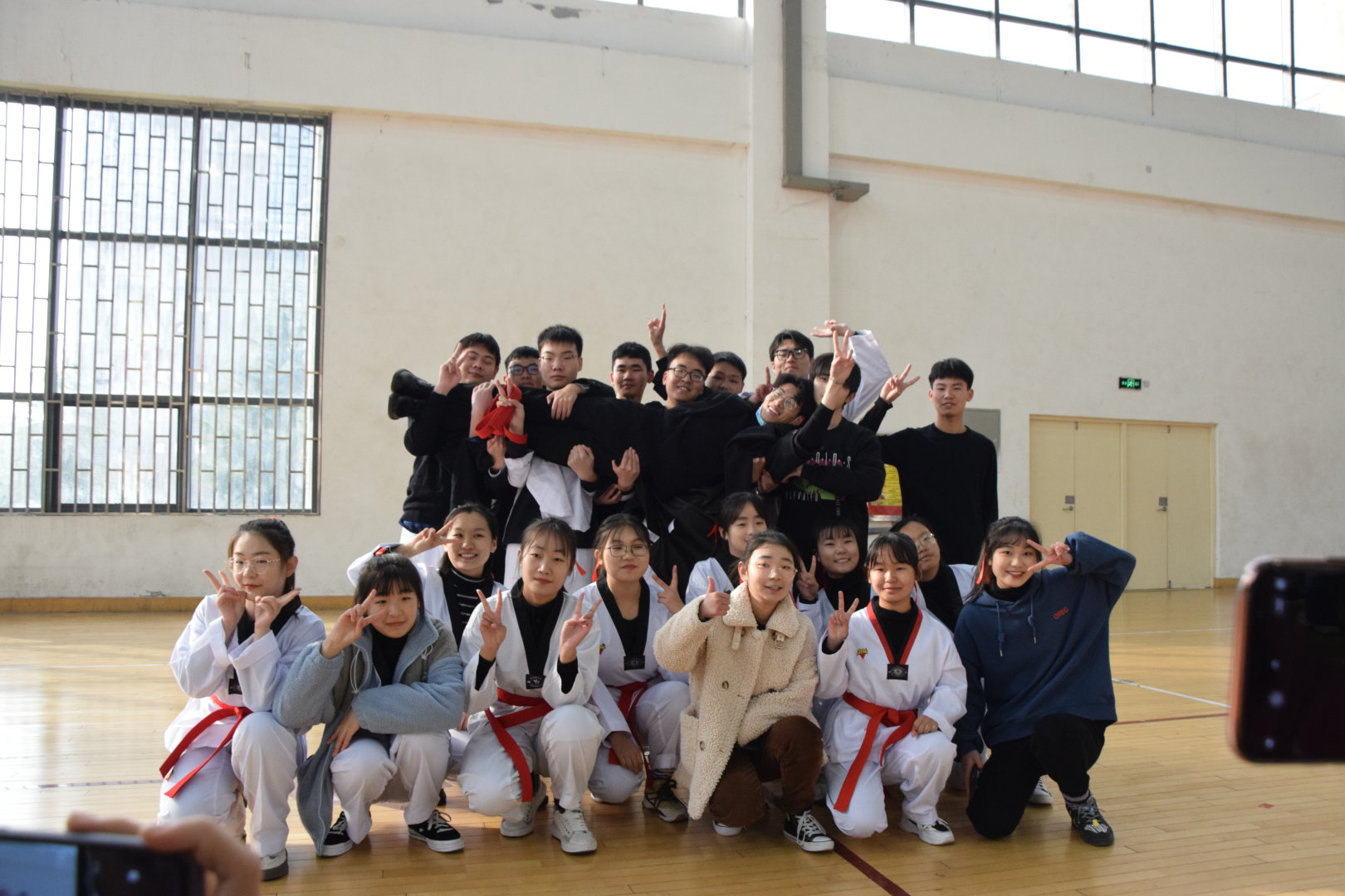 校阳光体育冬季系列赛之啦啦操、跆拳道比赛于1月2日在东操训练馆内开展。开云kaiyun体育响应号召,积极参与。