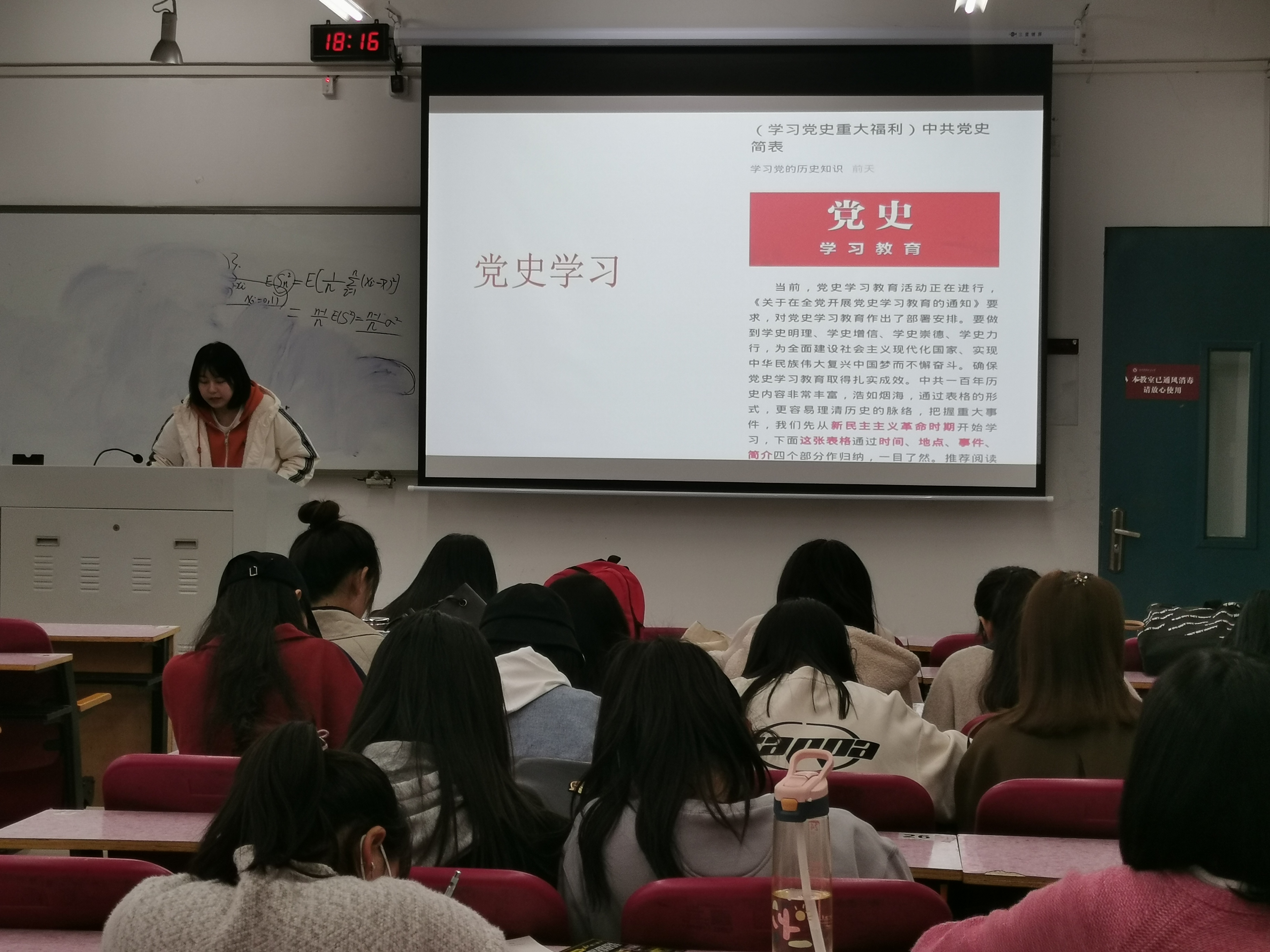 3月16日晚,为确保党史学习教育贯彻到位,提高学生的的党性修养,成为一名优秀的学生党员,开云kaiyun体育响应号召,开展学习党史主题班会,19、20级全体学生参与。