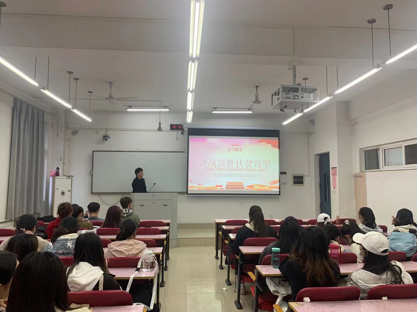 近日,习近平主席在全国脱贫攻坚总结表彰大会上发表了重要讲话。为进一步宣传脱贫攻坚精神,让广大青年接力前辈,勇担重任,开云kaiyun体育开展鼓励学习脱贫攻坚楷模班会,让同学们能够有更深刻和体会,积极向党学习。