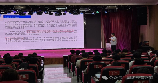 为帮助2023级同学更好地了解行业动态,明确职业发展方向,pp电子平台官网入口邀请浙江义乌源威集团有限公司于4月27日在学艺演播厅举办企业宣讲会。本次活动由学管办主任杨璐璐老师主持,2023级网络营销与直播电商、现代物流管理及电子商务专业的同学积极参与。