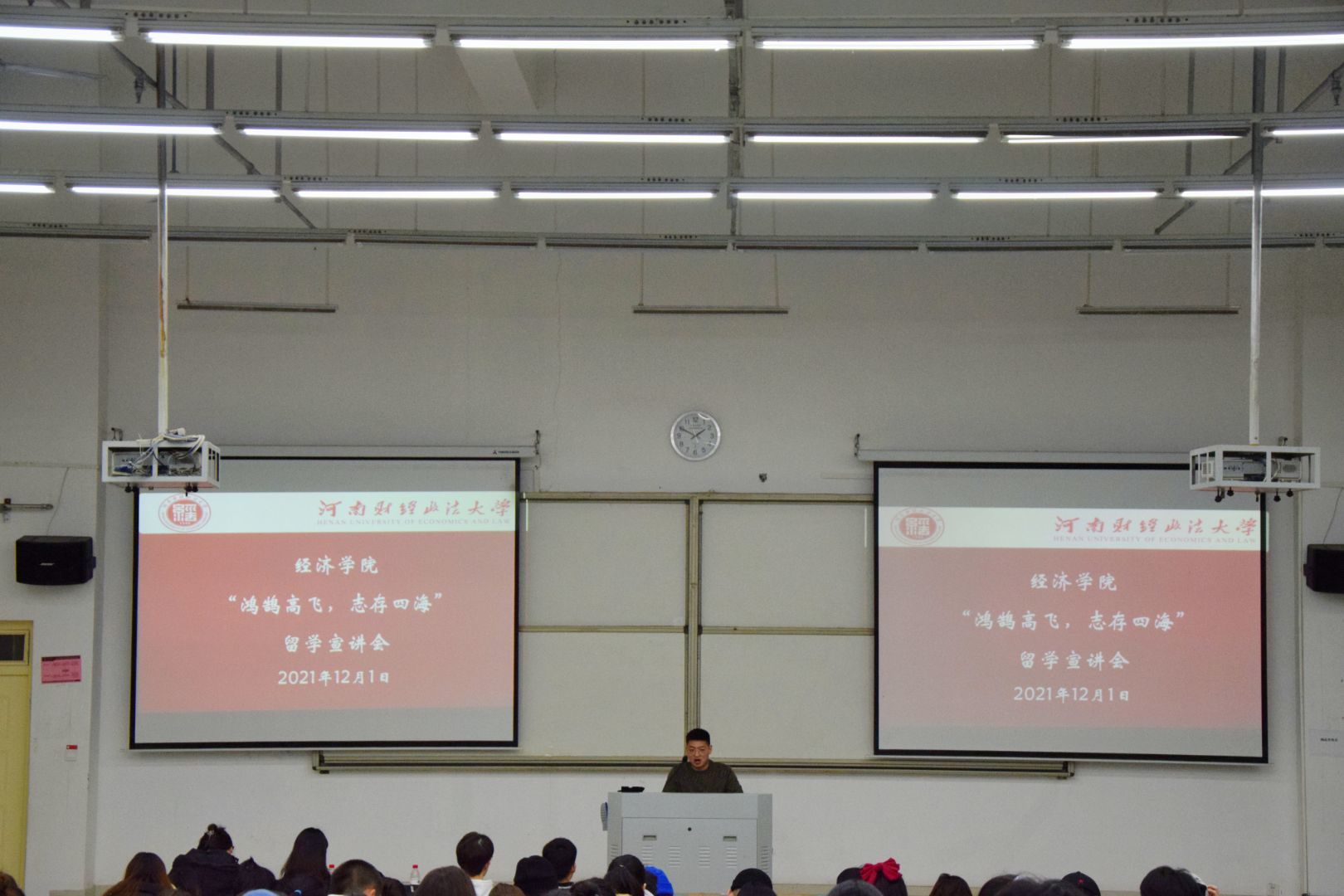 12月1日晚7:00,由开云kaiyun体育主办的“鸿鹄高飞 志存四海”留学宣讲会于教科210顺利召开。辅导员罗钊、辅导员黄子珊、留学代表、大二、大三中外合办班全体学生参加此次宣讲会。