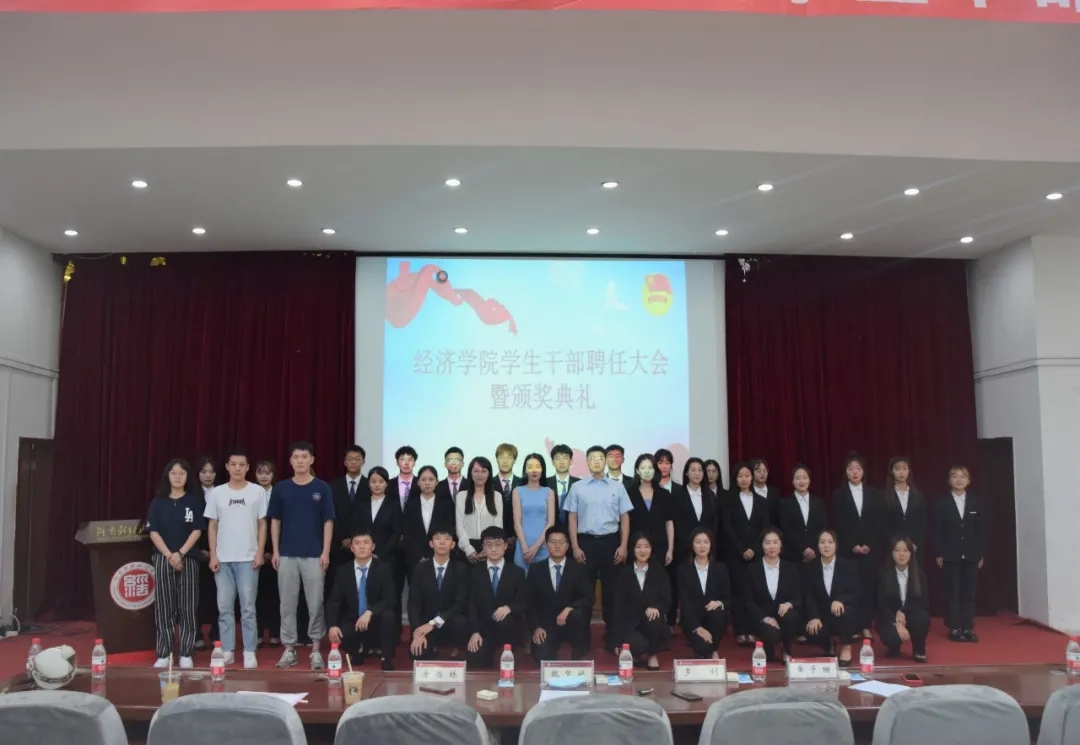 会议首先由魏梦媛上台发表讲话,她充分肯定了上一任学生干部们的辛勤付出,接着对新一届学生干部提出了要求和期望,希望学生干部们能不断提高个人业务能力和素养,积极热情,从而更好服务师生。随后,罗钊宣读了21届干部任命名单,并由上届学生干部依次为他们颁发聘书。接着,20届学生会主席李鹏鹏和21届学生干部代表丁嘉分别进行发言,他们分别就就去年工作予以总结,并对未来学院工作开展做出规划。会议最后,全体师生合影留念。