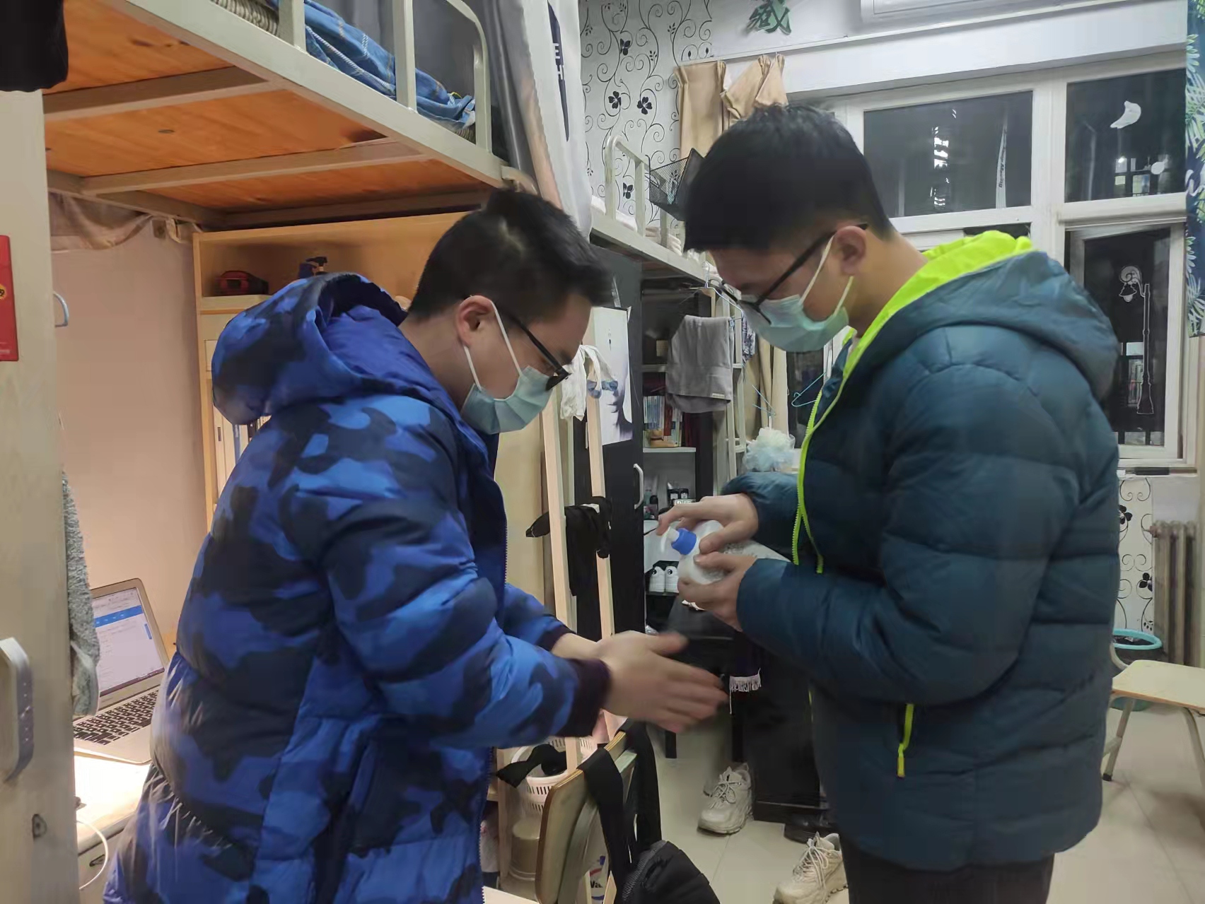 2021年11月7日,我院在静二414和静二415两个宿舍组织了疫情防控演练,本次演练一共有五个步骤。第一步:发现同学有发烧、咳嗽、乏力等疑似新冠肺炎症状。第一时间给患者戴上口罩等相应防护用品。第二步:立即向辅导员报告:今天晚上19:00有学生出现发烧、咳嗽、乏力等疑似新冠肺炎症状,目前该工作人员病情较重,发烧38.5度,已给患者戴上口罩等防护用品。第三步:学院实施“疫情应急处置预案”,落实必要防护措施,将患者转送至学校临时隔离点等待就医,由校医院将其送往相关医院发热门诊就诊。询问其外出、接触史,并上报学校。第四步:在病例诊疗的同时,对发热患者密切接触人员实行暂时隔离。辅导员负责通过电话、微信等方式,及时掌握就诊学生检查、治疗情况。第五步:学院疫情防控负责人尽快将该学生情况上报至学校。
