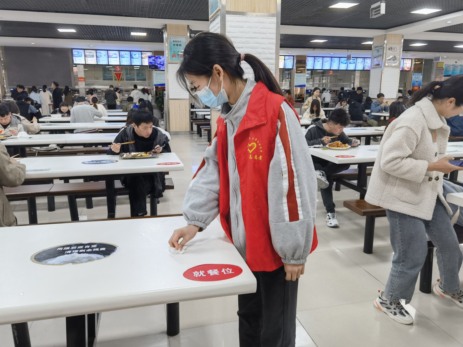 生活在财大中,我们的校园干净而美丽,我们的教室洁净而明亮,我们的餐厅整洁而有序,这都离不开“校园守护者”——清洁工人们的辛勤劳动。为了感谢他们的勤恳工作,传递人与人之间的爱心,我院于2021年11月份举办了帮助“校园守护者”打扫卫生的志愿活动。活动过程中,志愿者们怀揣着爱心与温暖来到第一餐厅,先是礼貌询问了餐厅保洁人员的日常工作情况和工作内容并向他们表示真挚的感谢;接着志愿者们主动地拿起扫帚,拿起抹布,进行了帮助餐厅保洁人员打扫餐厅地板,清理餐桌等一系列清洁活动;活动最后,志愿者们给餐厅保洁人员送出了手套,清洁工具等爱心礼物,再次感谢他们的默默付出。此次志愿活动,同学们积极报名参加,主动投身于餐厅卫生打扫工作中,真实地体会到了“校园守护者”们的劳累与辛苦,了解到了干净整洁的校园环境来之不易。同时,此次活动也培养了同学们“乐于助人,无私奉献”的志愿者精神,提高了同学们主动献出爱心的意识。相信通过本次活动,同学们会更加珍惜干净美丽的校园环境,更加关怀我们身边默默付出的人,在生活中展现我们的志愿者风采。
