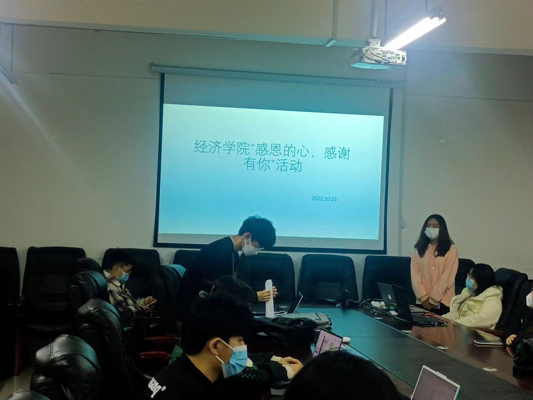在本次主题班会中,班长首先分享了古往今来闻名的感恩小故事,其中父亲藏饺子视频引起了同学们的一致共鸣;接着,邀请了几位同学合作朗诵了《拥有一颗感恩的心》并交流心得体会;最后同学们对感恩同学、感恩老师、感恩父母、感恩学校、感恩社会,感恩国家达成高度一致。
