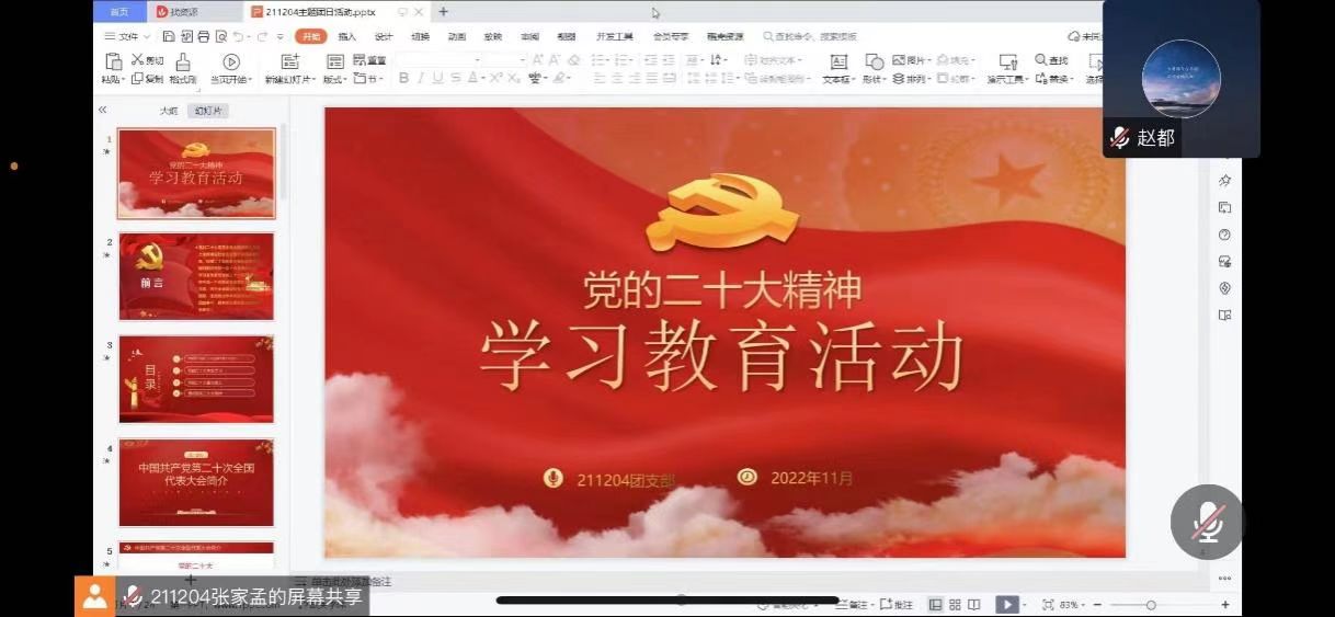 结合《关于认真学习贯彻党的二十大精神的通知》要求,开云kaiyun体育各支部于2022年11月15日至11月22日通过腾讯会议开展了“认真学习宣传贯彻党的二十大精神”活动。