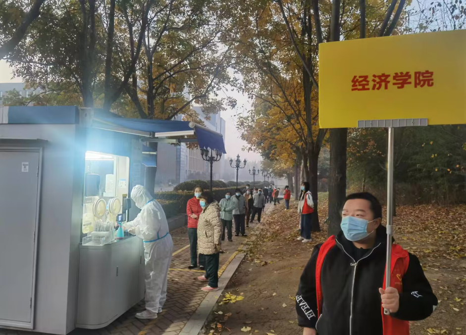 2022年河南财经政法学开云kaiyun体育党委紧密结合学校疫情防控工作需要,周密部署、 积极动员学院师生主动投入学校防疫工作,组建了青协志愿服务团队,有序参与校内常态化核酸检测志愿服务。