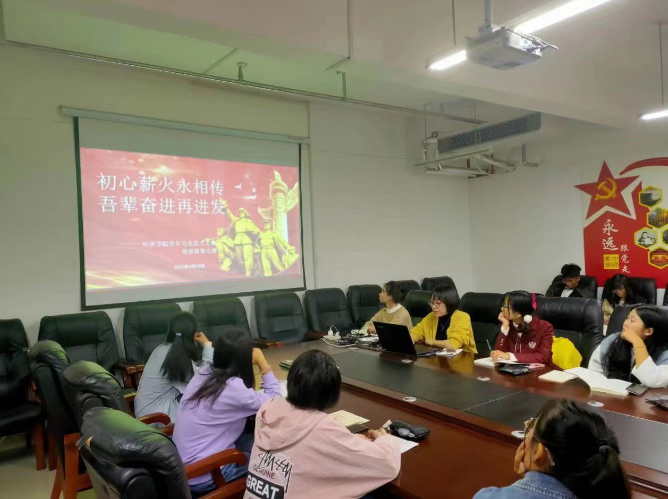 本次青马工程的主题为“初心薪火永相传,吾辈奋进再进发”,习近平总书记曾言“青年时代树立正确的理想、坚定的信念十分紧要,不仅要树立,而且要在心中扎根,一辈子都能坚持为之奋斗。”因此主讲人魏老师对学员们提出热切期望,希望他们能够珍惜学习的机会,提高思想政治素养,坚决维护以习近平同志为核心的党中央权威,在思想和行动始终和党中央保持高度一致,让青春踏上新时代的征程,用奋斗书写新时代的人生乐章。百年来,在马克思主义及其中国化成果的科学指引下,在中国共产党的坚强领导下,一代代中国青年把青春奋斗融入党和人民事业,成为实现中华民族伟大复兴的先锋力量。