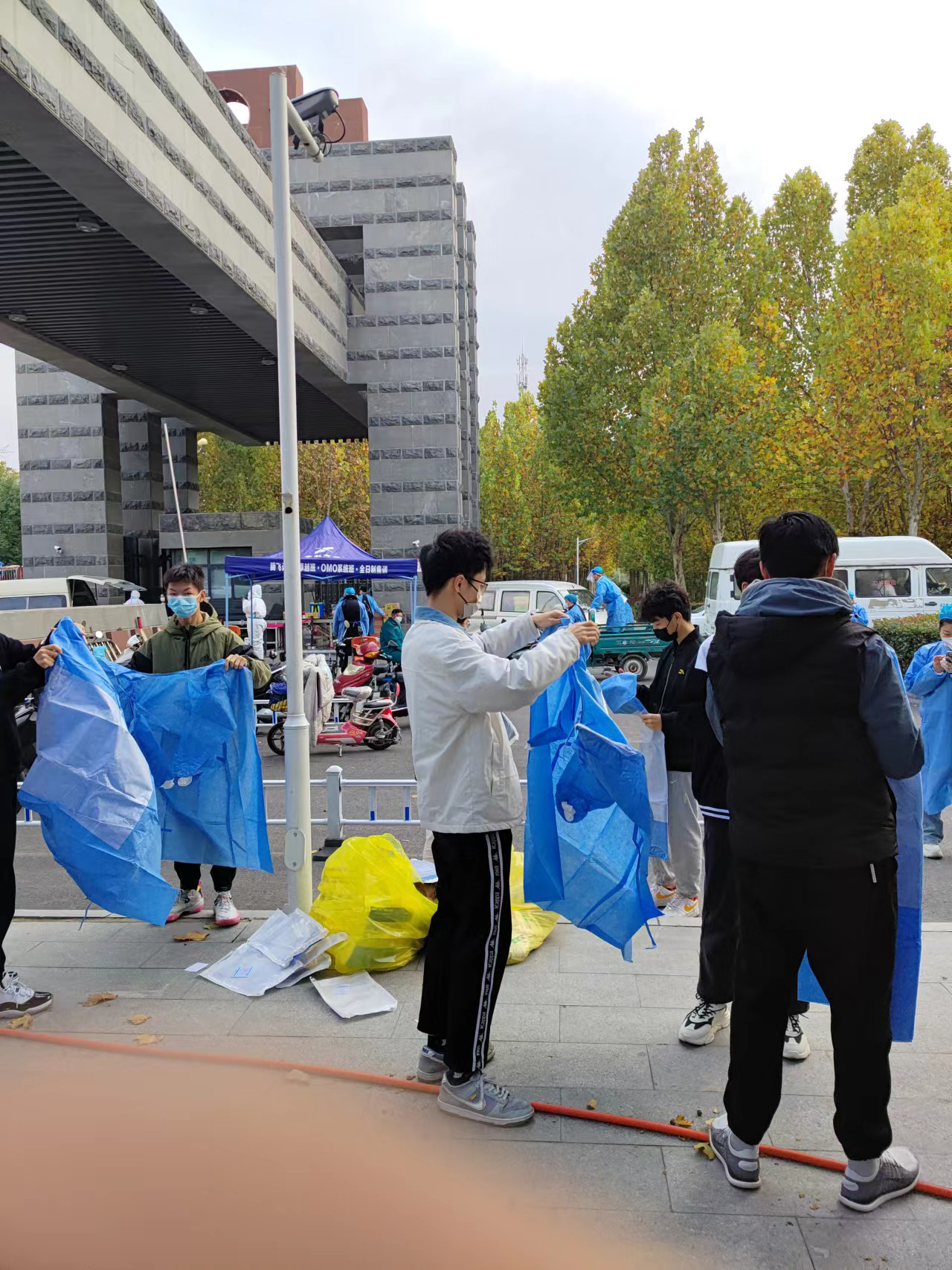 早上天刚微微亮,志愿者们便井然有序地到校门口领取,穿戴防护服,以及领取消毒用品。随后,在指导老师及青年志愿者协会成员的带领下,大家共同前往静苑(疫情返校学生住宿楼)进行病毒消杀工作。厚重的防护服,刺鼻的消毒液气味,繁琐的工作任务……尽管困难重重,但志愿者们认真负责,不畏艰难,一心一意为保卫学校安全作出最大的努力。秋风虽冷,吹不凉我们志愿者们的热情;病毒虽强,强不过我们广大师生战胜疫情的决心。越到艰难时刻,我们的凝聚力越强;越是条件艰苦,我们的吃苦精神越显著。战胜疫情是我们师生共同努力的结果。